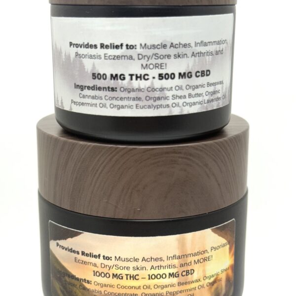 Discover the soothing power of Nature’s Remedy THC Infused Cream, crafted with premium organic ingredients for ultimate relief. Infused with cannabis concentrate, organic coconut oil, beeswax, shea butter, peppermint, eucalyptus, and lavender oils, this topical balm targets muscle aches, inflammation, psoriasis, dry sore skin, arthritis, and more. Available in two sizes: a 1,000mg jar (500mg THC + 500mg CBD) for on-the-go comfort, or a 2,000mg jar (1,000mg THC + 1,000mg CBD) for extended wellness. Embrace nature’s remedy today.